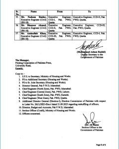 ذرائع محکمہ PAK PWD اورٹھیکیداروں کے مطابق اربوں روپے کے ٹینڈرز کی18 فی صدپول حاصل کر کے الاٹمنٹ کی،بعدازاں جب اس حوالے سے ایگزیکٹو انجینئرز صاحبان سے موقف لینے کے لئے بین الاقوامی خبرساں ادارے کے نمائندے نے رابطوں کا سلسلہ بڑھایا تو انہوں نے ان انکشافات کا مبینہ طور الزام موجودہ چیف انجینئر آفس پر ڈال دیا اور ان پرمبینہ کمیشن کا الزام لگایاجبکہ باقی الزامات کی تردید کی، ہمارے ذرائع نے مزید بتایا کے گزشتہ روز الیکشن کمیشن آف پاکستان کی طرف سے سیکرٹری ہاؤسنگ نے 21ایگزیکٹو انجینئرز اور9ایس ایاور 2 چیف انجینئرصاحبان کے تبادلے کردیئے ذرائع کےمطابق الیکشن کمیشن آف پاکستان نے ترقیاتی منصوبوں پر کام بھی روکنے کے احکامات جاری کئے،ذرائع کے مطابق مذکورہ چیف انجینئر کی مبینہ ملی بھگت سے ایگزیکٹو انجینئرز نے مبینہ طور پر من پسند ٹھیکیداروں کو پچھلی تاریخوں میں اربوں روپے کی ایڈوانس بوگس ادائیگیاں کردیں ہیں۔