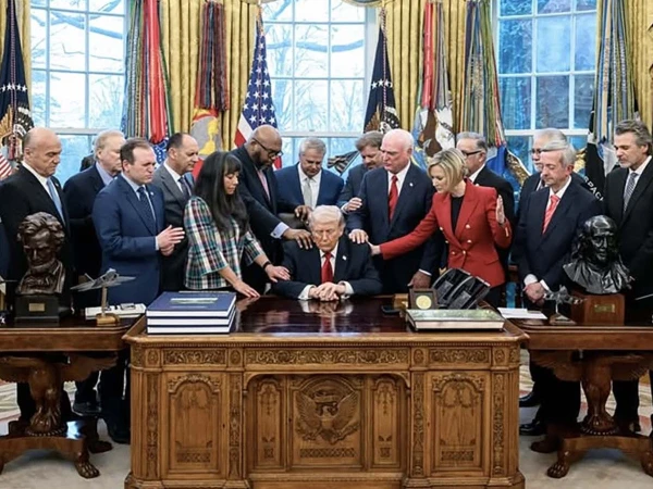 وائٹ ہاؤس کی جانب سے جاری ویڈیو میں دیکھا جا سکتا ہے کہ متعدد مذہبی رہنما صدر کے گرد جمع ہیں، آنکھیں بند کر کے دعا کر رہے ہیں جبکہ کچھ پادریوں نے صدر کے کندھوں پر ہاتھ رکھے ہوئے ہیں۔ رپورٹس کے مطابق یہ مذہبی رہنما امریکا کے مختلف حصوں سے وائٹ ہاؤس آئے تھے اور انہوں نے مشرق وسطیٰ میں بڑھتی کشیدگی اور ایران کے خلاف فوجی کارروائیوں کے دوران صدر کے فیصلوں کے لیے خدائی رہنمائی کی دعا کی۔