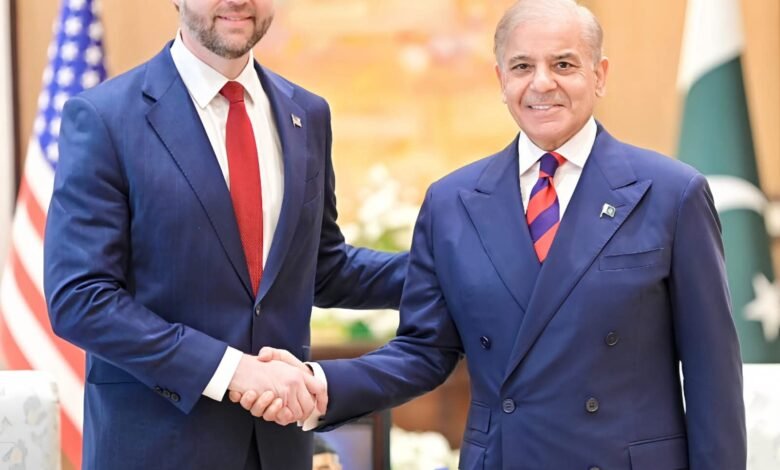 اسلام آباد(ٹی این آئی)وزیراعظم شہباز شریف سے امریکا کے نائب صدر جے ڈی وینس نے ملاقات کی جس میں دو طرفہ تعلقات سمیت اہم علاقائی امور پر تبادلہ خیال کیا۔وزیراعظم آفس کی جانب سے جاری اعلامیے کے مطابق جے ڈی وینس کے ساتھ ہونے والی ملاقات میں اسٹیو وٹکوف اور جیرڈ کشنر بھی موجود تھے جبکہ پاکستان کی جانب سے نائب وزیراعظم اسحاق ڈار اور وزیر داخلہ محسن نقوی بھی وزیراعظم کے ہمراہ تھے۔اعلامیے کے مطابق ملاقات میں خطے میں امن، استحکام اور باہمی تعاون کے امکانات پر تفصیلی گفتگو کی گئی۔اس موقع پر وزیراعظم شہبا شریف کا کہنا تھا پاکستان خطے میں پائیدار امن کے قیام کے لیے اپنی کوششیں جاری رکھے گا۔